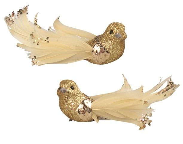 Ptáčci na klipu s glitry zlatí 8 cm, 2 ks