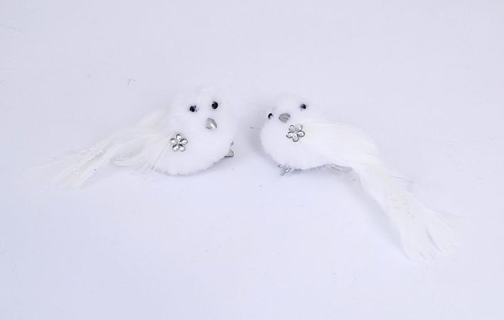 Ptáček bílý na klipu plyš 12cm, 2ks /3281/