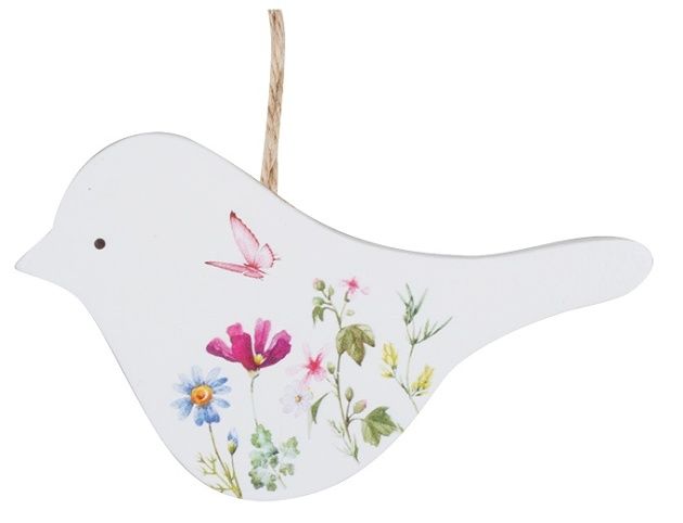 Ptáček bílý s květinovým vzorem na zavěšení 13,5 cm