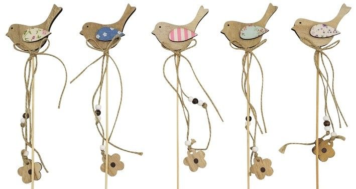 Ptáček dřevěný 8 cm + špejle