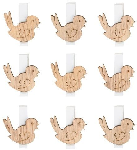 Ptáček dřevěný přírodní 3,5 cm na kolíčku 9 ks