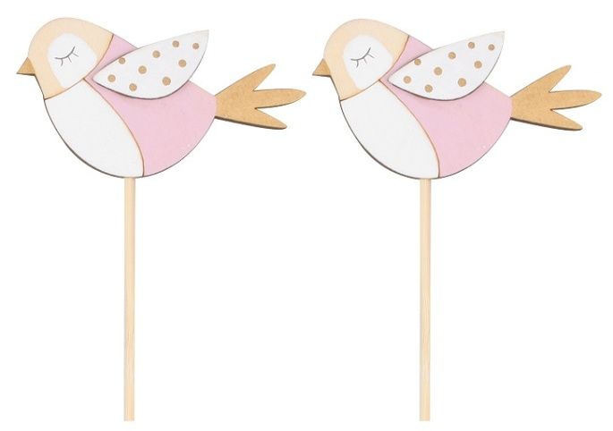 Ptáček na špejli 9 cm + špejle, 2 ks v sáčku