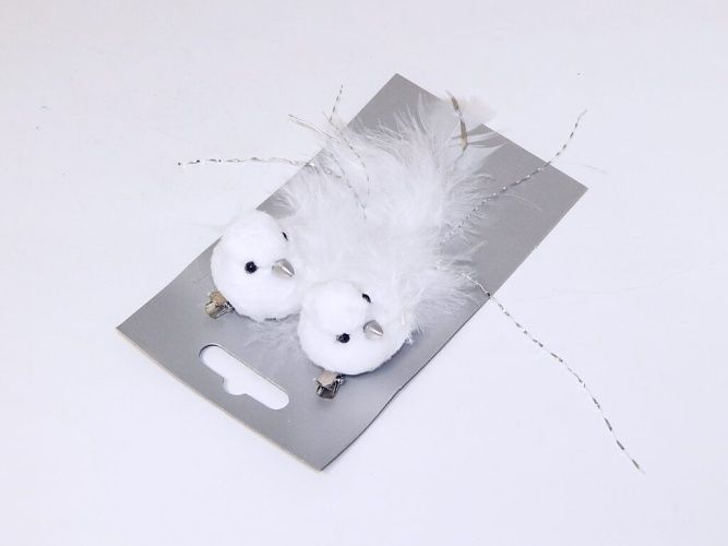 Ptáček plyšový bílý na klipu 2 ks, 14 cm / 18046