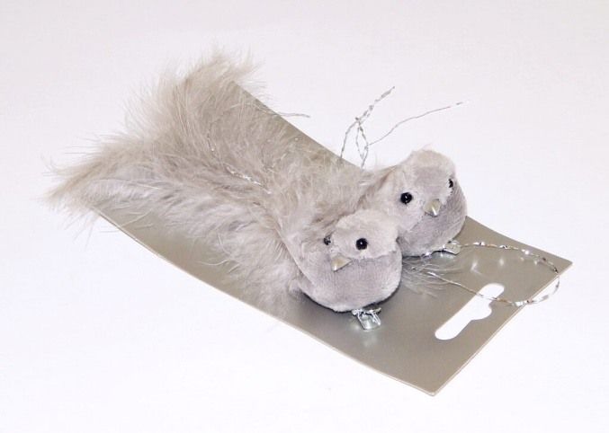 Ptáček plyšový šedý na klipu 2 ks, 14 cm / 18047