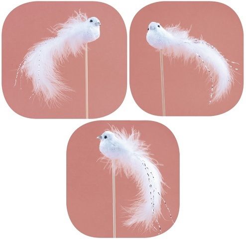 Ptáček plyšový stříbrný 14 cm + špejle