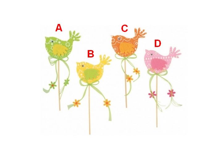 Ptáček z filcu bílý dekor 7cm 1ks 4 druhy