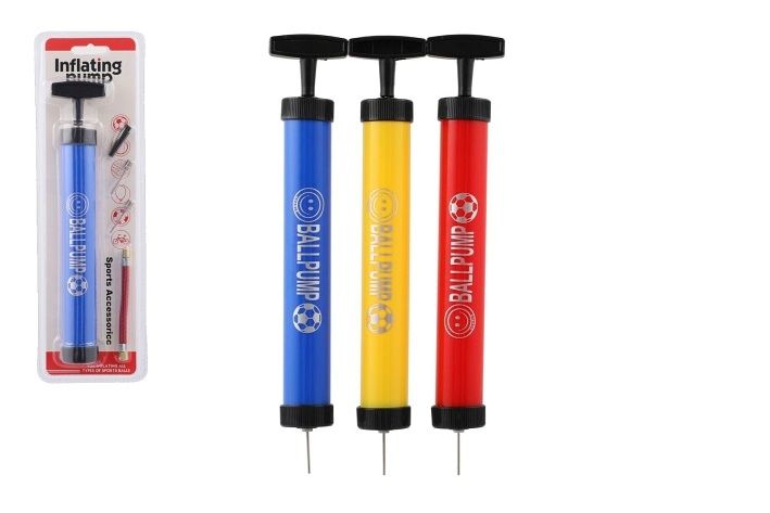 Pumpička na míče ruční plast 28cm s kovovými hroty 3 barvy na kartě 11x36x5cm