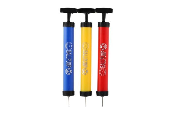 Ruční pumpička na míče se třemi kovovými hroty.