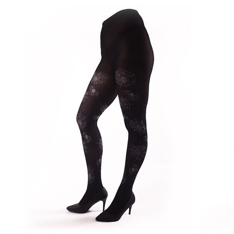 Černé punčocháče s motivem stříbrných pavučinek. Perfektní doplněk ke kostýmu nebo na párty!