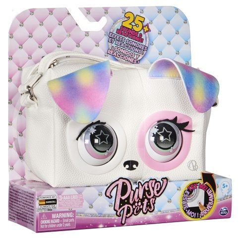 Interaktivní kabelka Duhové štěňátko má veliké mrkací oči, které reagují na dotykový senzor. Pomocí dalších dotyků aktivuj až 25 různých zvuků a reakcí. Je vyrobena z kvalitní umělé kůže se spoustou krásných detailů. Velikost 10,8 x 15,9 x 6,4 cm. Vhodné od 5 let.