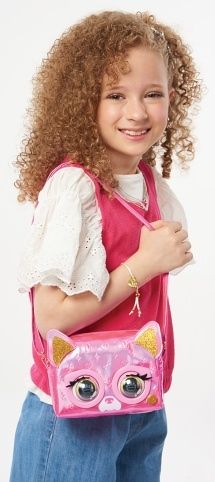 Interaktivní kabelka Pejsek má veliké mrkací oči, které reagují na dotykový senzor. Pomocí dalších dotyků aktivuj až 30 různých zvuků a reakcí. Je vyrobená z lesklé růžové látky, má zlatá třpytivá ouška, kovové doplňky a nastavitelný popruh. Velikost 11 × 16 × 6,5 cm. Vhodné od 5 let. Na baterie: 3x AAA (jsou součástí balení)