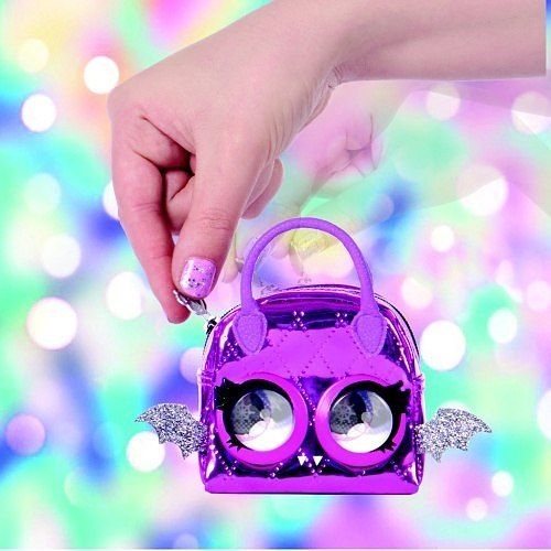 Stylová mikro kabelka v podobě Netopýrka má oči, které se otáčejí při otevírání a zavírání zipem. Vyrobeno z prémiových materálů a textur. Velikost cca 8×8×5 cm. V jedné ze šesti mikrokabelek najdeš unikátní značkovou gumičku do vlasů. Vhodné od 5 let.
