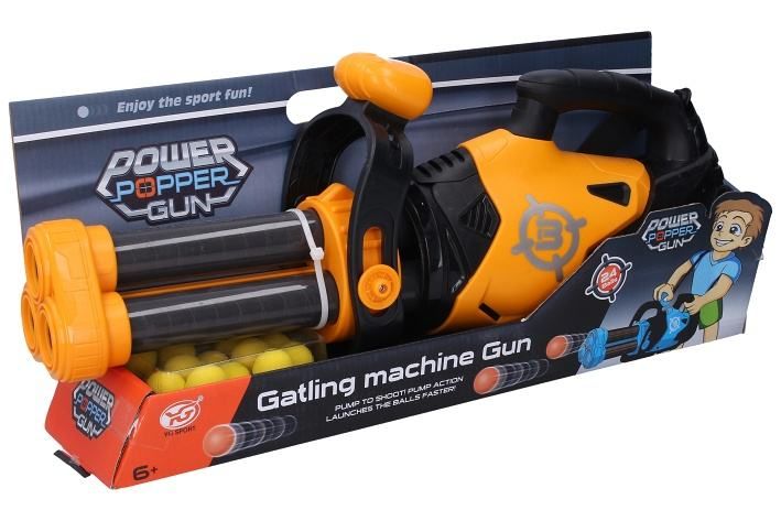 Puška kulomet gatling s pěnovými míčky 49 cm. Součástí 24 pěnových míčků, popruh.