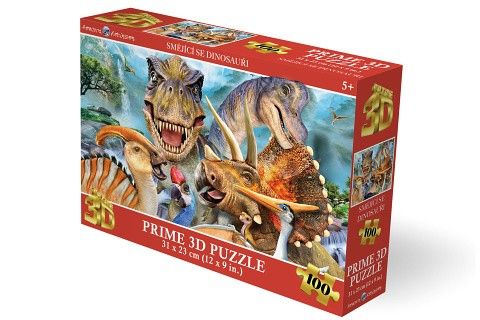 3D puzzle s motivem smějících se dinosaurů. Balení obsahuje 100 dílků. Rozměry balení 23x15x5 cm. Rozměry složeného obrázku 31x23 cm. Věk 5+