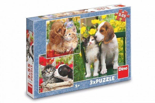 Puzzle 3v1 Zvířecí kamarádi 3x55 dílků v krabici 28x19x4cm