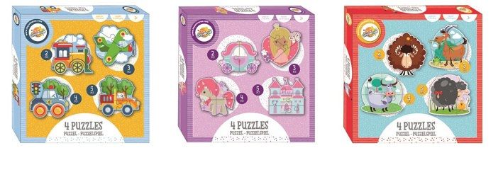 Puzzle 4v1 - 2,3,4 a 5 dílků 18x18 cm, 3 druhy. Nelze vybrat druh, dodáváme dle skladové dostupnosti.