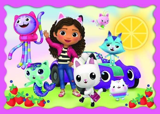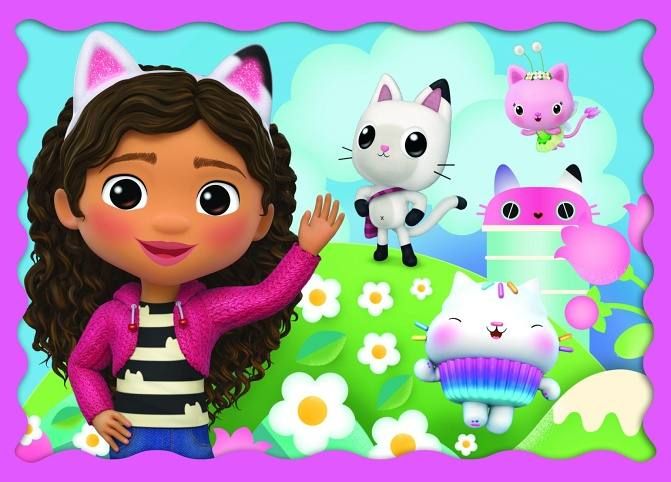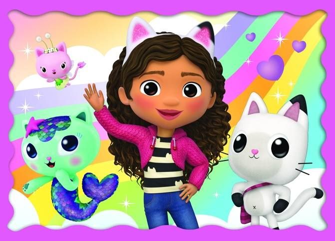 Puzzle 4v1 Gabbyina dobrodružství/Gabby‚s Dollhouse 28,5x20,5cm v krabici 28x28x6cm