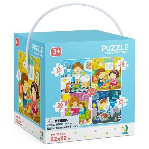 Dětské puzzle značky DODO s obrázky denních činností. Rozměr puzzle po složení: 22×22cm. Věk: 3+