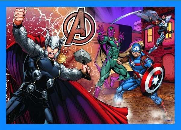 Puzzle s motivem oblíbených hrdinů Avengers. Čtyři samostatná puzzle s různým počtem dílků - 35, 48, 54, 70 - postupně vedou ke zdokonalování dítěte při skládání a zvyšování obtížnosti. Velikost složeného obrázku (4 obrázky) je 28,5 x 20,5 cm.
