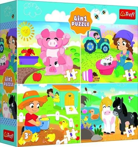 Puzzle 4v1 Zvířátka na vsi 18,5x16cm v krabici 20x20x5cm