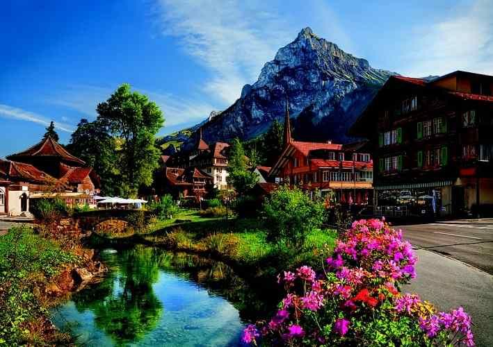Puzzle Alpy v létě 1000 dílků podložka na stavění