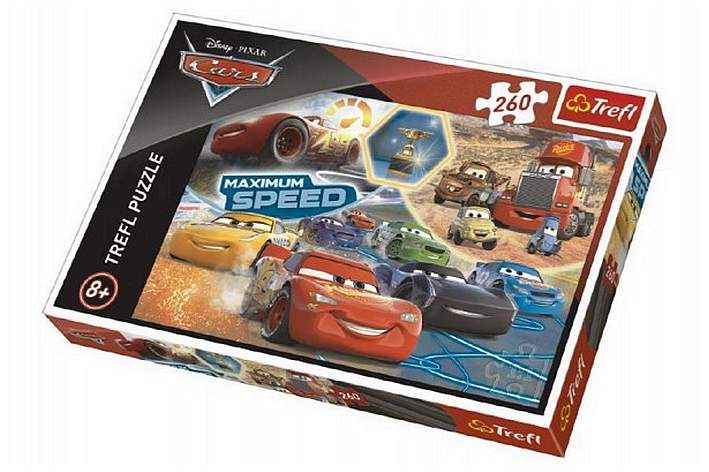 Puzzle Trefl s výjevem z filmu Cars. Potěšte své ratolesti puzzle s hrdiny jsko je Blesk MCQueen, které obsahuje 260 dílků.