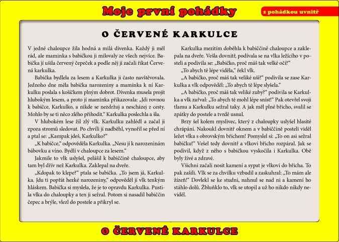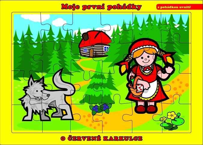 Deskové puzzle o rozměru 26x17cm s motivem pohádky o Červené Karkulce. Pod obrázkem se na desce ukrývá pohádka o této holčičce.