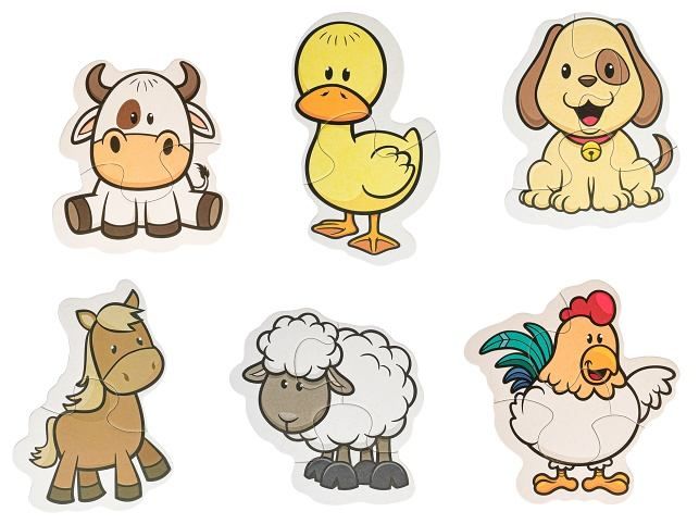 Puzzle s motivy domácích zvířátek. Skládání puzzle rozvíjí dětskou fantazii a podporuje motoriku. Určené pro děti vě věku od 3 let. Balení obsahuje: 15ks puzzle (6 obrázků).