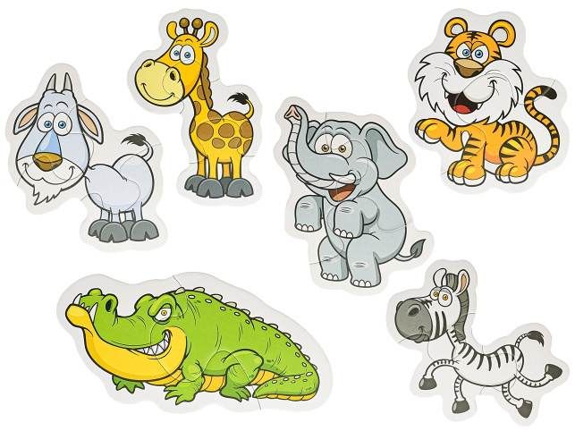 Puzzle s motivy safari zvířátek. Skládání puzzle rozvíjí dětskou fantazii a podporuje motoriku. Určené pro děti vě věku od 3 let. Balení obsahuje: 16ks puzzle (6 obrázků).