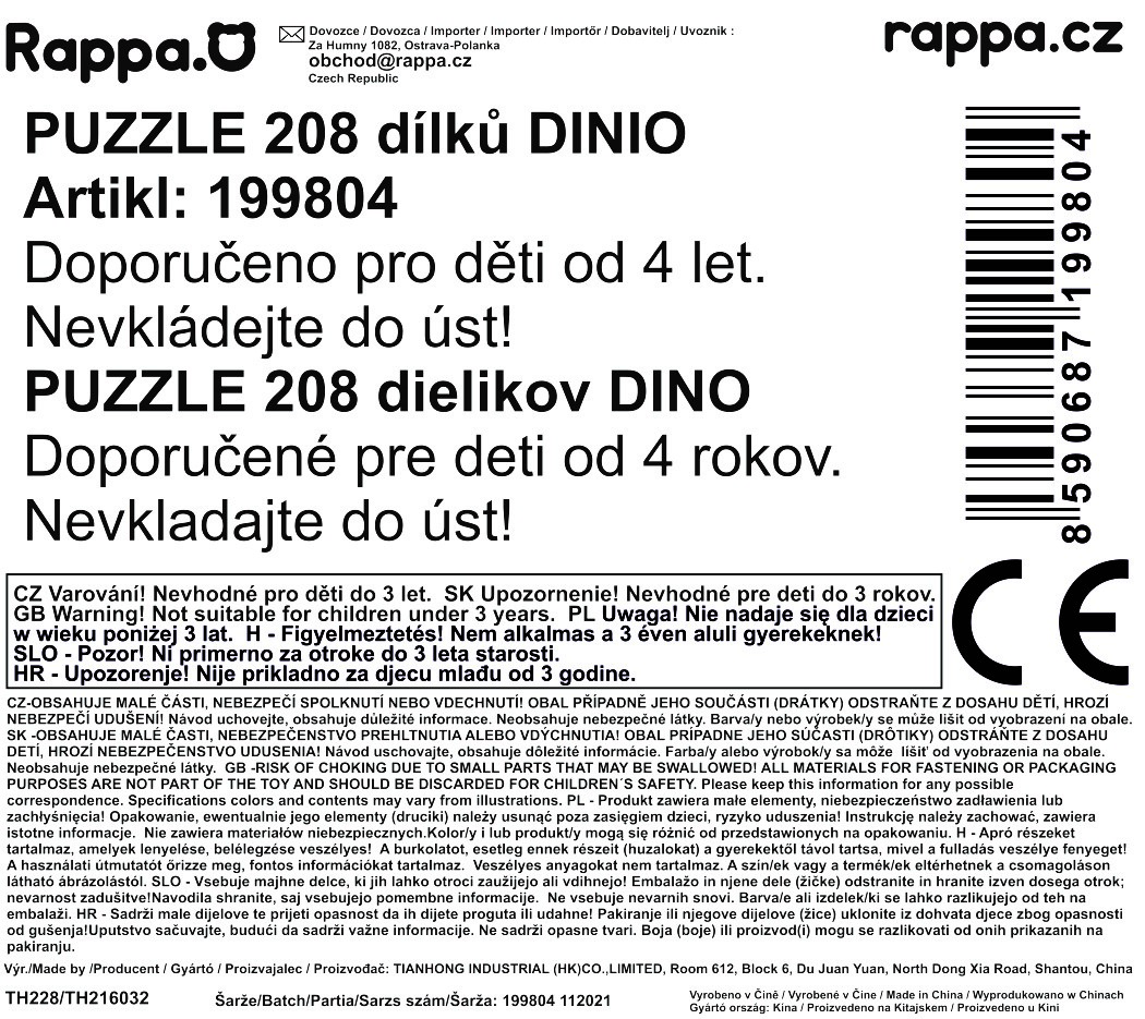 Puzzle dinosauři nabízí dětem kreativní a chytrou zábavu. Z 208 velkých dílků si poskládají obrázek života na Zemi před mnoha milióny let. Přitom si budou rozvíjet fantazii, prostorovou představivost, trpělivost a jemnou motoriku. Skládačka je ideální pro děti od 4 let. Všechny části jsou z pevné lepenky. Poskládaný obrázek měří 64 x 90 cm.