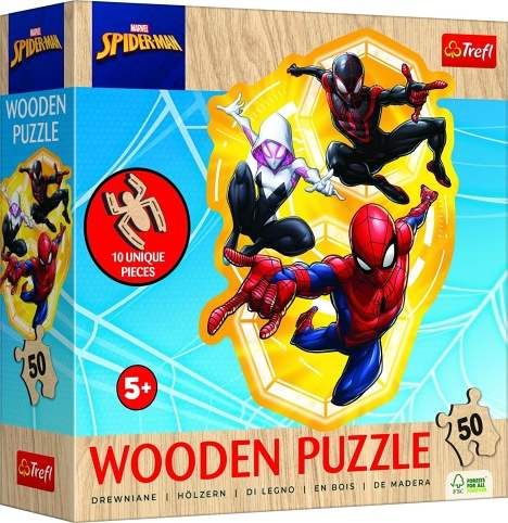 Puzzle dřevěné nepravidelné tvary Spiderman 50 dílků 19,7x26,6cm v krabici 20x20x6cm