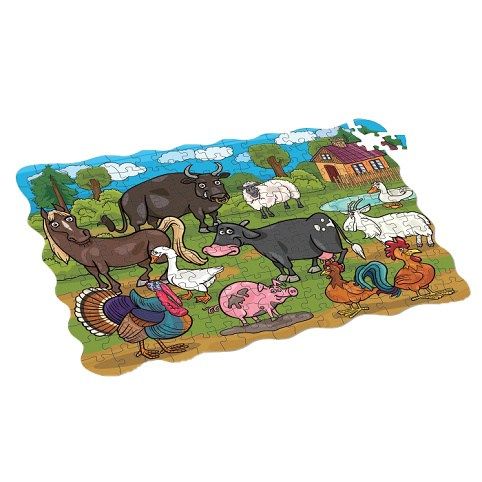 Puzzle šťastná farma nabízí dětem kreativní a chytrou zábavu. Z 208 velkých dílků si poskládají obrázek farmy včetně farmáře a jeho domácích zvířat. Přitom si budou rozvíjet fantazii, prostorovou představivost, trpělivost a jemnou motoriku. Skládačka je ideální pro děti od 4 let. Všechny části jsou z pevné lepenky. Poskládaný obrázek měří 64 x 90 cm.