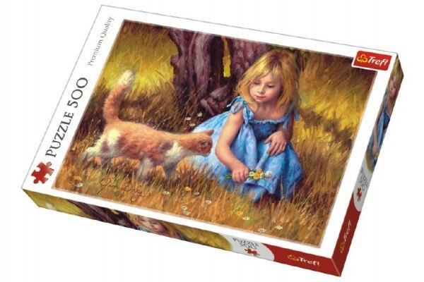 Puzzle Holčička s kočkou malované 500 dílků 48x34cm v krabici 40x27x4,5cm