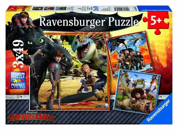 Puzzle Jak vycvičit Draka - Dračí jezdci 3x49 dílků