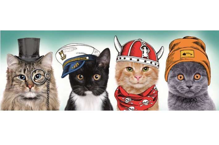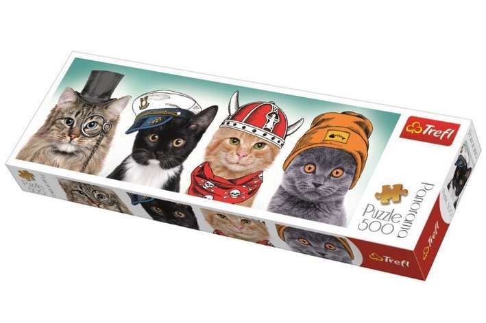 Puzzle kočky s čepicemi panorama 500 dílků 66x23,7cm v krabici 40x13x4cm
