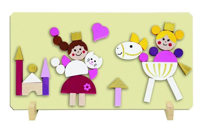 Dřevěné obarvené dílky podlepené magnetky, s oblíbeným dívčím motivem Princezen. Hra pomáhá rozvíjet jemnou motoriku rukou, kreativitu a fantazii dětí.