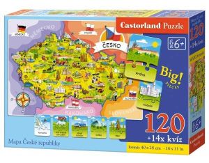 Puzzle Mapa České republiky 120 dílků + 14 kvízů naučné 40x28cm v krabici