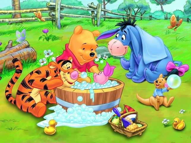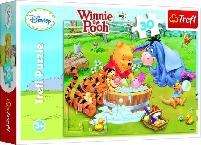 Puzzle Medvídek Pú Prasátko se koupe 27x20cm 30 dílků v krabici 21x14x4cm