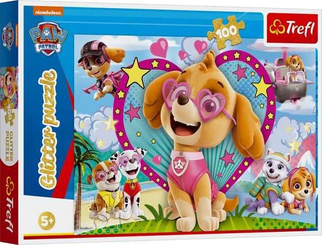 Puzzle Paw Patrol/Tlapková patrola třpytivé 100 dílků 48x34cm v krabici 33x23x4cm