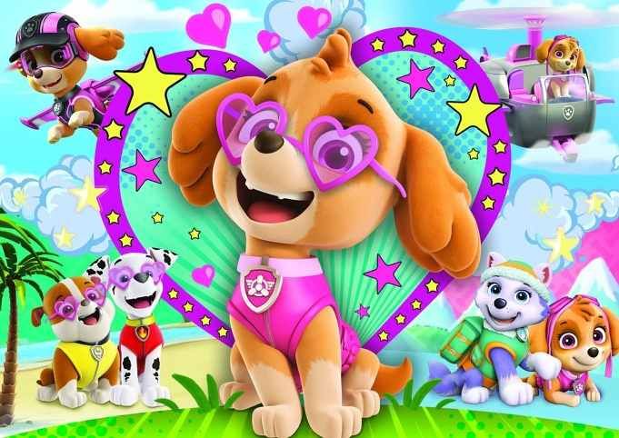 V záři Sky je puzzle skládající se ze 100 dílků, určená zejména pro malé fanoušky animované produkce „Paw Patrol/Tlapková patrola“. Puzzle je pokryto jemným zlatým leskem, díky kterému se jednotlivé dílky nádherně třpytí a vytvářejí úžasný dojem. Po sestavení puzzle bude vytvořen obrázek o rozměrech 48 x 34 cm.