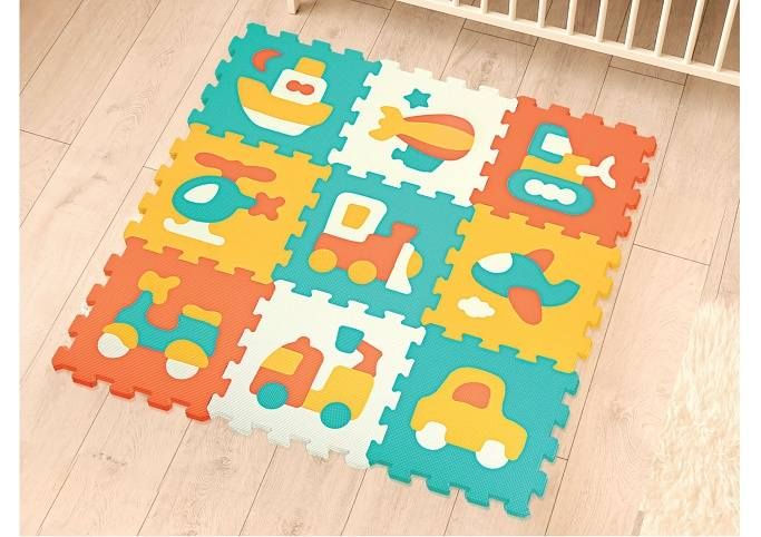 Puzzle pěnové doprava 9ks. Velikost 32x32 cm, tloušťka 1 cm. Pěnové puzzle s obrázky dopravních prostředků.