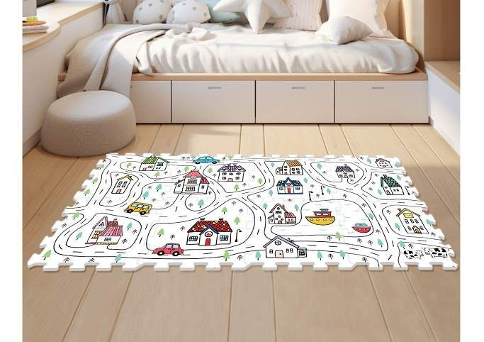 Puzzle pěnové město 8ks. Velikost 31,5x31,5 cm, tloušťka 1 cm.