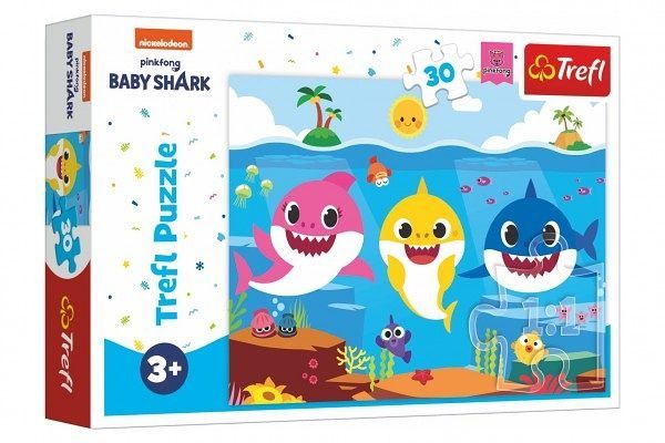 Puzzle 30 dílků s veselými žraloky. Velikost složeného obrázku je 27 x 20 cm. Puzzle je vyrobeno z vysoce kvalitního papíru, který je potažený ekologickými barvami.