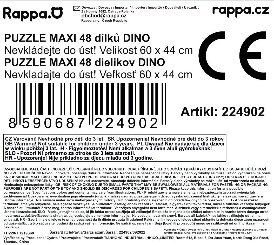 Tyto puzzle s motivem dinosaurů obsahují 48 dílků. Výsledný obrázek je velký 60 x 44 cm, jednotlivé dílky jsou dostatečně velké pro snadný úchop dětí již od 3 let. Rozvíjí myšlení a kreativitu.