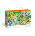 S puzzle DODO je skládání ještě zábavnější. Poskládejte puzzle a najděte všechna zvířátka a návštěvníky, kteří jsou vyobrazeni na jeho okrajích. Barevný a detailně ilustrovaný obrázek s hledací hrou (možno hrát více způsoby: hledání na obrázku, ve více dětech kdo najde dřív, na čas..), rozvíjí slovní zásobu, paměť a koncentraci. Rozměr puzzle po složení: 41×35cm. Věk: 5+
