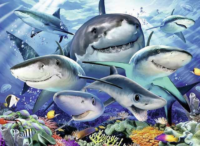 Puzzle Smějící se žraloci 300 dílků