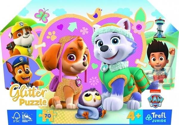 Puzzle třpytivé Skye a Everest Tlapková patrola/Paw patrol 70 dílků 41x27,5cm v kr. 28x20x