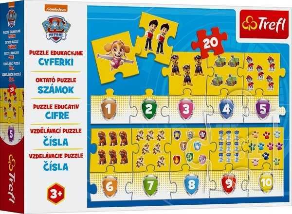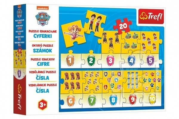 Puzzle vzdělávací Čísla Tlapková patrola/Paw Patrol 20 dílků 117x19,5cm v krabici 33x23cm