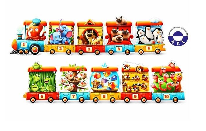 Puzzlika, nová značka puzzlů s moderním kreativním designem, přináší pro malé děti aktivní učení formou zábavné hry. Spočítáte kolik zvířátek uveze tento vláček? V krabičce naleznete 20 velkých pevných puzzlů, ze kterých poskládáte 94 cm dlouhý vláček plný cestujícíh. Lokomotiva i každý vagon se skládá ze dvou dílků. Na jedné části puzzliků je ilustrace jednotlivých zvířátek v určitém počtu a na druhé polovině puzzliků je vyobrazen jejich počet číslicí. Správně spojené dílky vytvoří vagony, které je třeba pak poskládat tak, aby na sebe číselně navazovaly. Naučné puzzle je skvělá hra pro malé děti, která u nich rozvíjí logické myšlení, představivost, kreativitu, jemnou motoriku a různé poznávací znalosti. Puzzle jsou vyrobeny z velice pevného vícevrstvého kartonu s lesklým povrchem. Karton byl vyroben z kvalitního, ekologicky pěstovaného dřeva. Puzzle je možné otřít vlhkým hadříkem. Nevhodné pro děti do 3 let. Vyrobeno v Evropě.