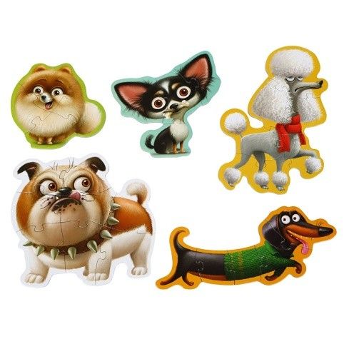 Puzzlika 14248 Psi 5 v 1 - puzzle 5 obrázků z 27 dílků